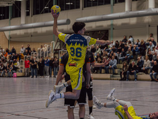 Zu Beginn der Partie legten beide Mannschaften Wert auf Tempospiel. Neuenbürg konnte von Beginn an durch starkes Spiel über den Kreis überzeugen, Nils Pollmer netzte gleich zu Beginn zwei Mal. Bei der HSG strahlten im Angriff vor allem Rückraum-Linkshänder Luis Foege und vom Rückraum-Linken Janne Böhm viel Gefahr aus. Ein erstes Mal deutlicher absetzen konnten sich die Foxes in der neunten Minute, als Der treffsichere Dominik Brath per Siebenmeter auf 6:3 stellte. In der elften Minute glich Ostfildern wieder zum 6:6 aus. Die Partie blieb die gesamte erste Hälfte über eng. Kein Team konnte sich in irgendeinem Bereich des Spiels einen Vorteil erringen. Torhüter, Abwehr und Offensive agierten bei beiden Teams auf einem Niveau. Für die Foxes war es deshalb wichtig, konzentriert zu bleiben und keinen Leistungseinbruch zu erleiden. Vor allem im Angriff hielt man die Erfolgsquote bei den Abschlüssen hoch, auch weil man weiterhin auf Tempo setzte. Ein weiteres Mal bestätigten Luca Merz und Vincent Virzi das in sie gesetzte Vertrauen, die beiden Rückraumspieler nehmen seit der Winterpause immer wichtigere Rollen im Angriff der Foxes ein. Rund eine Minute vor der Pause stellte der kämpferisch auftretende Johannes Köster auf 17:15. Ostfilderns Janne Böhm konnte noch auf 17:16 stellen, was auf eine spannende zweite Hälfte hoffen ließ.