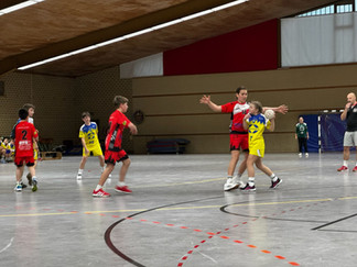 Der Start in die Partie war nicht einfach. Die Gastgeber aus Durlach verteidigten sehr gut, wodurch wir im Angriff nur schwer zu klaren Abschlüssen kamen. Die Führung wechselte mehrfach, zudem blieben einige gute Chancen ungenutzt. In dieser Phase war Torhüter Mika Schmidt ein starker Rückhalt. Im Angriff übernahm Hugo Bayer Verantwortung und nutzte seine Chancen konsequent. So ging es mit einem ausgeglichenen 10:10 in die Pause.